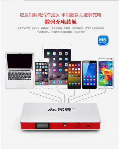 2、手機、筆記本等電子產品提供一個供應源。 汽車應急啟動電源除了啟動汽車、提供照明,還具有一個特色功能,那就是它可以為智能手機、筆記本等產品提供一個供應源。因為在汽車應急啟動電源是一種全功能新型汽車充電器,它具有四個USB接口和一個DC電源接口,其中USB接口可以為MP3、PDA、手機、數碼相機、錄音筆等數碼產品提供充電,DC電源接口則可以使用不同手機來使用不同手轉接頭充電,十分地方便。(一般情況下很多人在外出差的時候,手提電腦、手機沒電了,又在急等客戶的電話,這時候可真是想熱窩上的螞蟻了,怎么辦,周圍也沒有可用充電的地方,相信你看了本文之后也不會有疑問-汽車應急啟動電源,昂佳推薦,它能提供多接口輸出,幫助您的手機、電腦充電使用)。